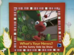 Grover (Eric Jacobson) and his superhero alter ego Super Grover from Sesame Street and Play With Me Sesame appeared on The Sunny Side Up Show for a "Super New Year's Party" with hosts Kelly Vrooman and Chica during Time Week. They sang about New Year's Resolutions to the tune of "Turkey in the Straw," in which Grover's resolutions included taking pictures, discovering a new breed of blue apple, tying his shoes, hugging a penguin, and drinking hot chocolate with a dove. Man, Sesame Street Muppets can be funny at times! When he was given the "Super Good Egg Award," Grover gave a speech and thanked all his family members.